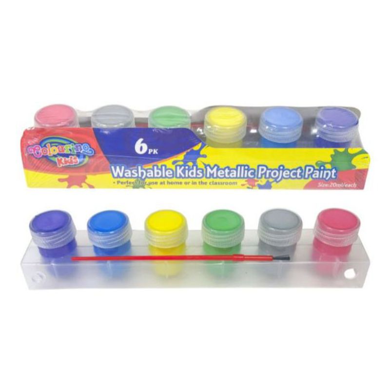 6 Pack Kids Washable Metallic Colours Project Paint - 20ml