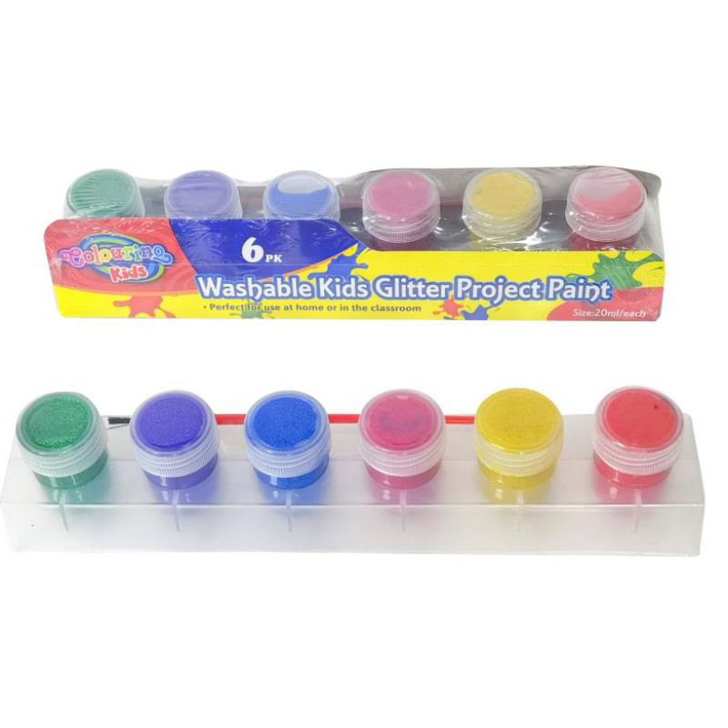 6 Pack Kids Washable Glitter Colours Project Paint - 20ml