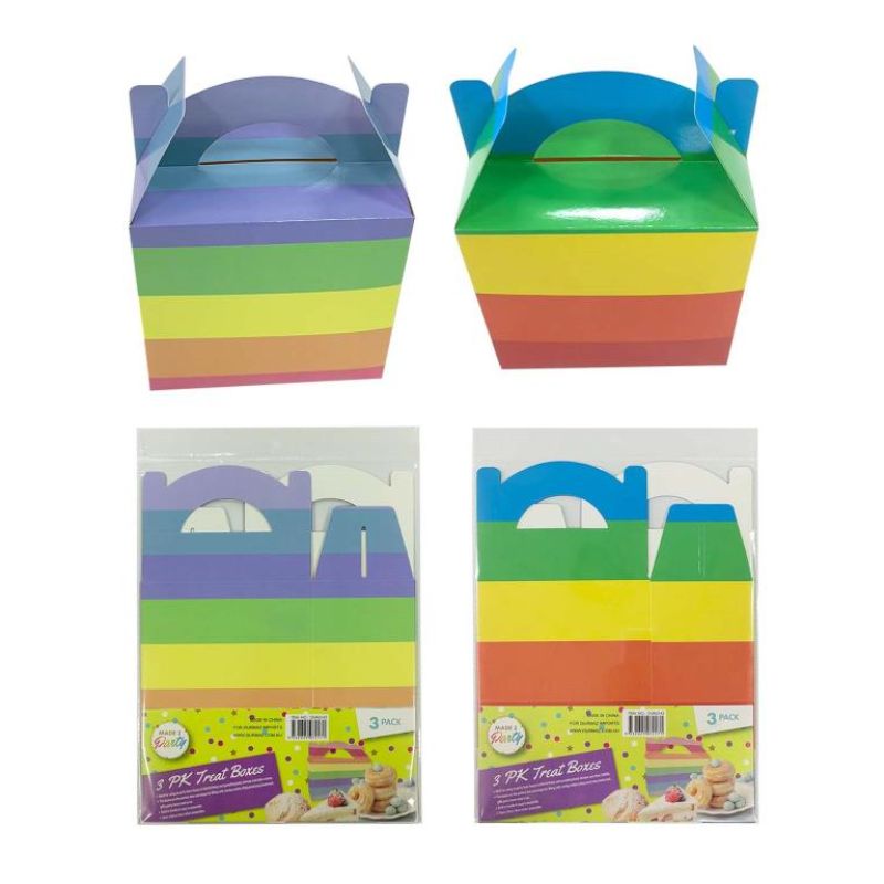 3 Pack Rainbow Treat Boxes - 15cm x 15cm x 9cm