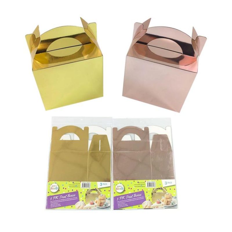 3 Pack Gold Treat Boxes -15cm x 15cm x 9cm