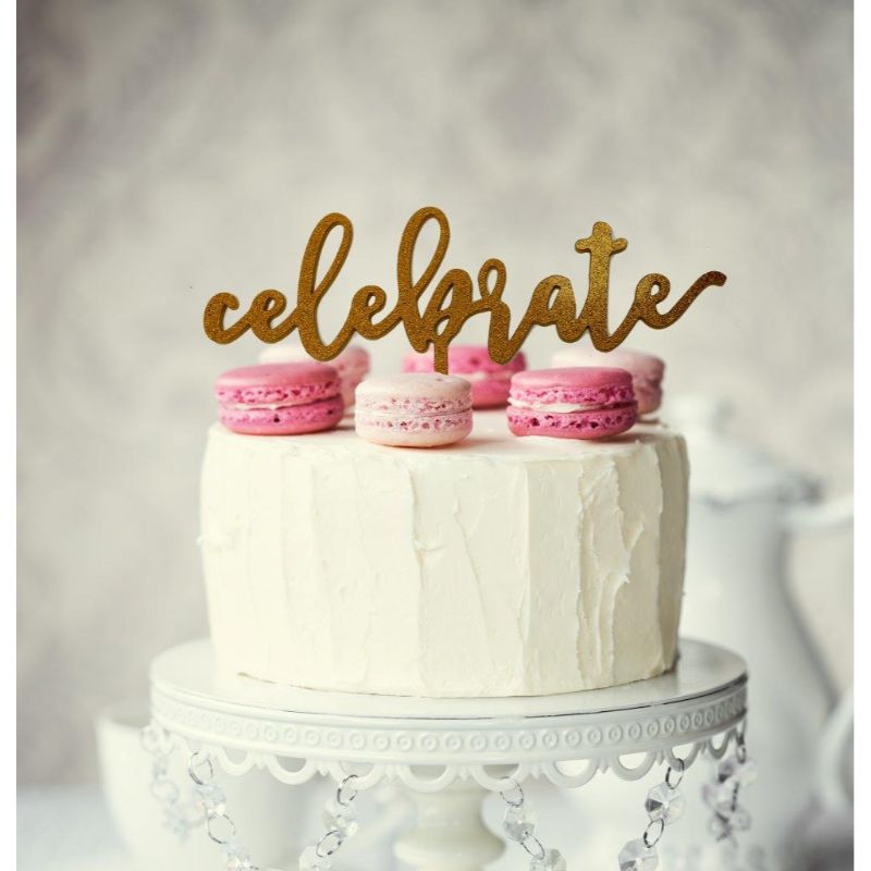 Gold Celebrate Cake Topper - 10.5cm x 16.5cm