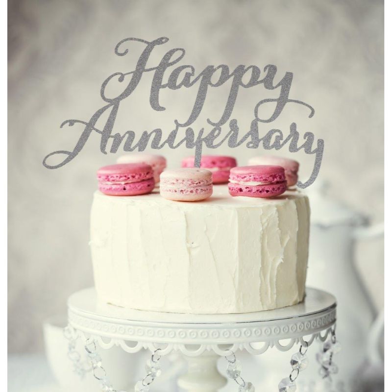 Only 1 left!Silver Happy Anniversary Cake Topper - 11cm x 17.5cm