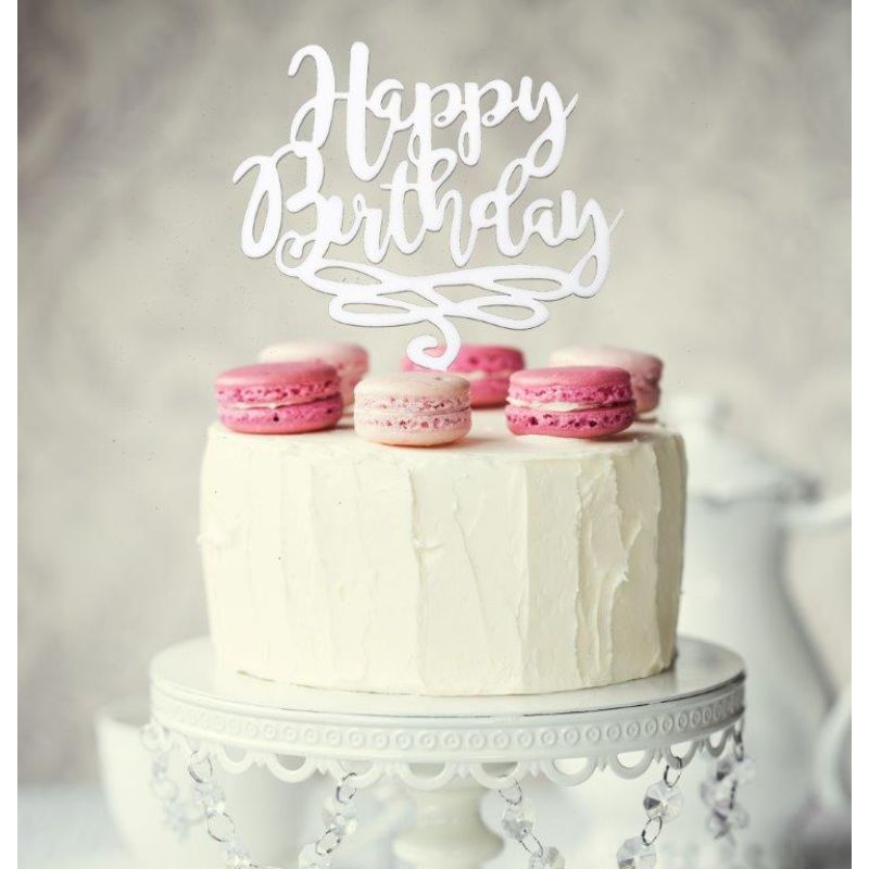 White Happy Birthday Cake Topper - 13cm x 17cm