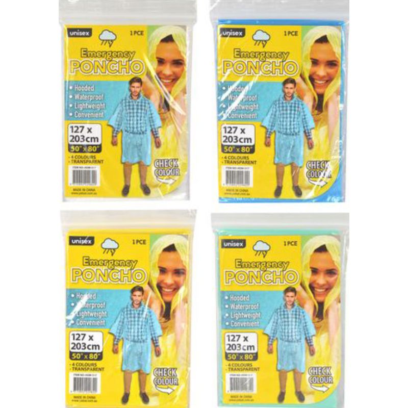 9 in stockEmergency Unisex Transparent Hooded Poncho - 127cm x 203cm