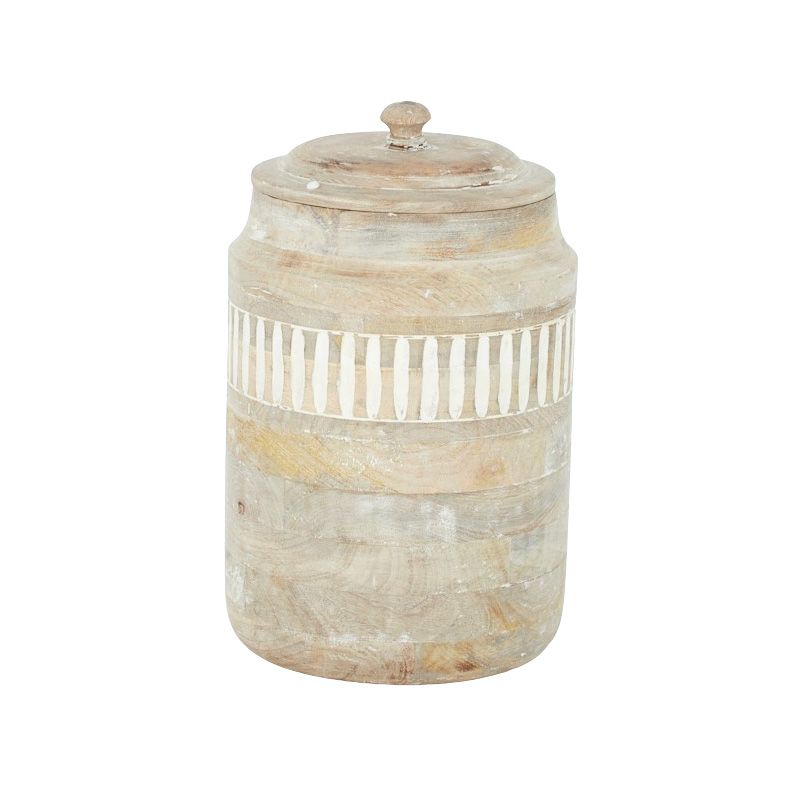 Natural & White Davi Wood Canister - 17cm x 28cm