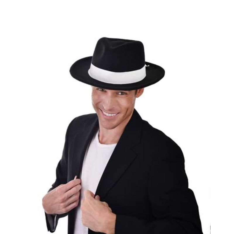 Black Gangster Hat with White Band - One Size Fits Most