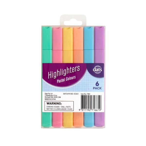 6 Pack Pastel Colours Highlighters
