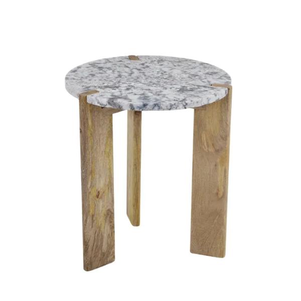 Only 2 left!Licata Granite Wood Side Table - 45cm x 50cm