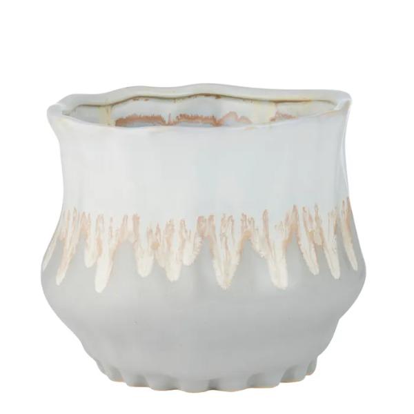Only 3 left!Omeo Ivory & Steel Ceramic Pot - 18cm x 17.5cm