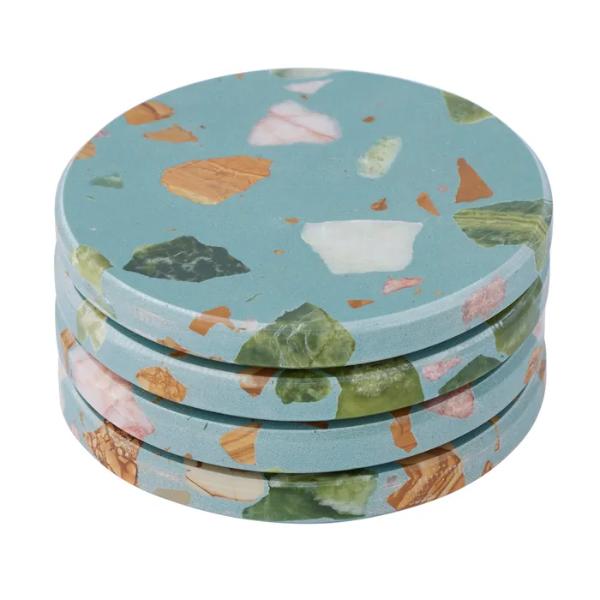 Only 1 left!4 Pack Teal Jewel Terrazzo Coasters - 10cm