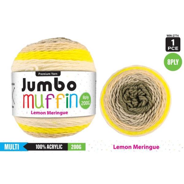 11 in stockPremium Jumbo Muffin Lemon Merinque 100% Acrylic 8 Ply Yarn - 200g
