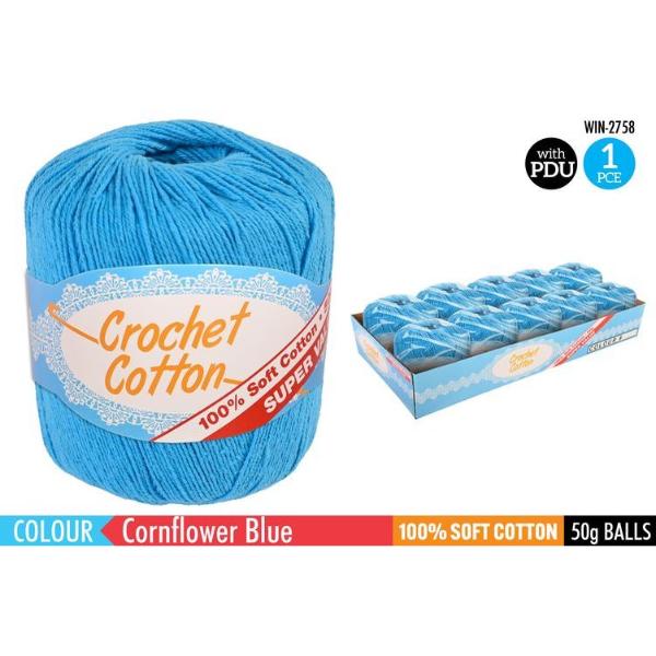 Cornflower Blue 100% Soft Cotton Crochet - 50g