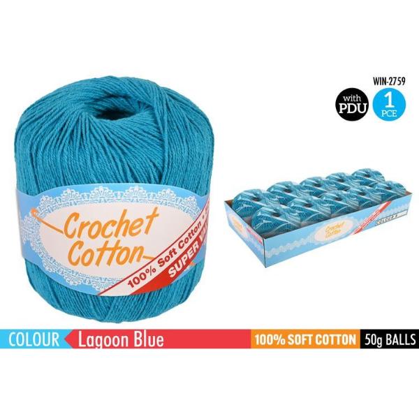 Lagoon Blue 100% Soft Cotton Crochet - 50g