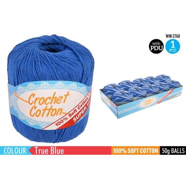 Only 4 left!True Blue 100% Soft Cotton Crochet - 50g