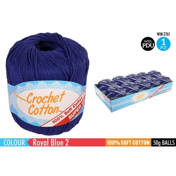 Royal Blue 2 100% Soft Cotton Crochet - 50g