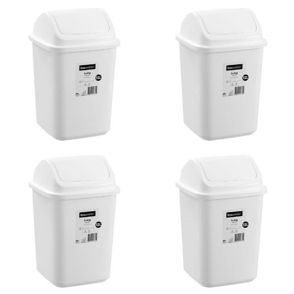 Boxsweden White Swing Top Bin 12L Trash Container - 38cm