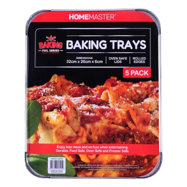Only 2 left!5 Pack Foil Baking Trays With Lids - 32cm x 23cm x 6cm