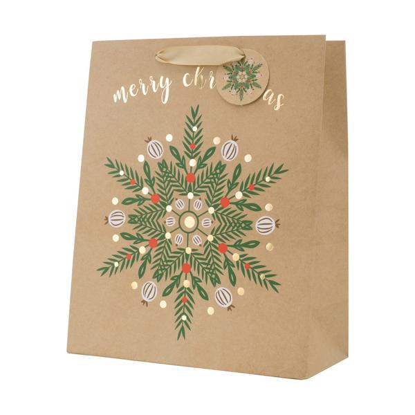 22 in stockMedium Christmas Snowflake Kraft Gift Bag - 18cm x 23cm x 10cm