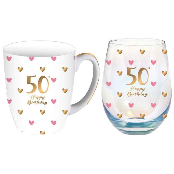 2 Pack 50th Sweet Heart 400ml Mug & Stemless Glass - 520ml