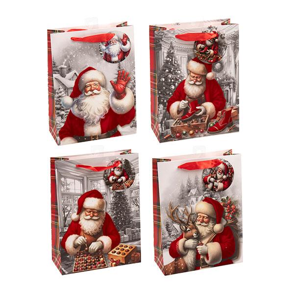 24 in stockChristmas Flocked 210gsm With JHook Santa Gift Bag - Medium