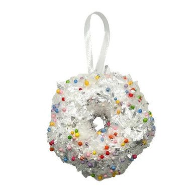 Christmas White Donut Tree Ornament Decoration - 10cm x 4cm