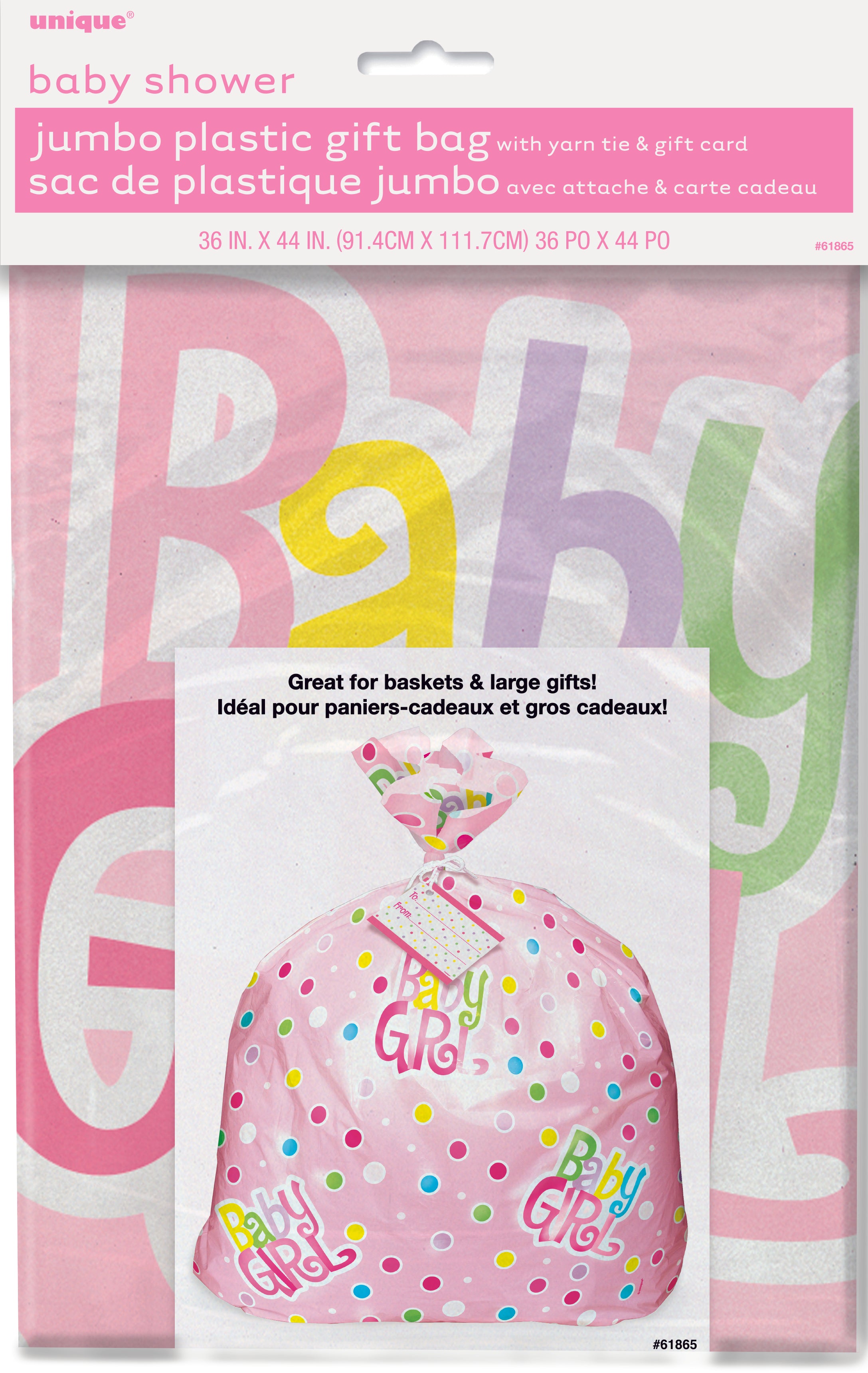 Only 3 left!Pink Dots Baby Shower Girl Jumbo Cello Bag with Gift Card - 91.4cm x 111.7cm