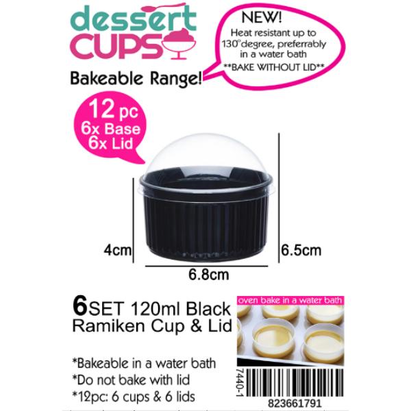 6 Pack Black Bakeable Dessert Cups With Lid - 120ml