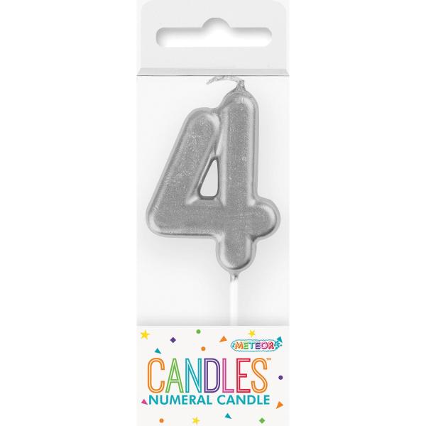 17 in stockMini Silver Numeral 4 Pick Candle - 8cm