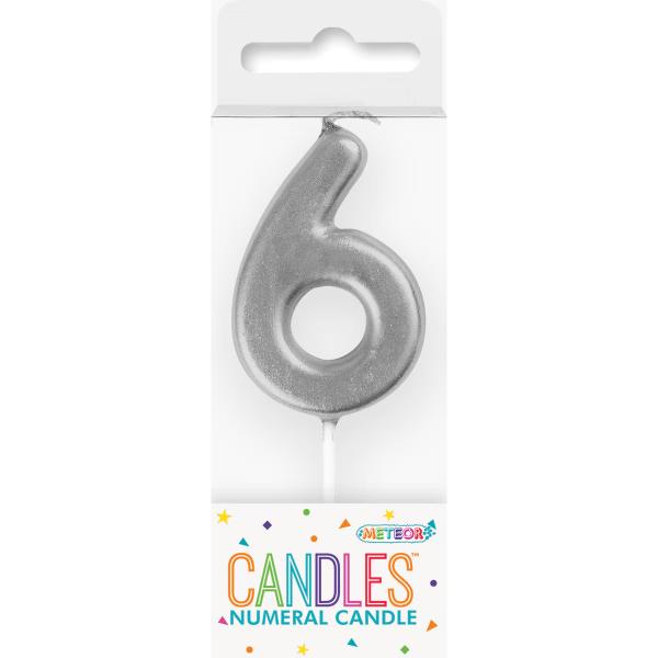 22 in stockMini Silver Numeral 6 Pick Candle - 8cm