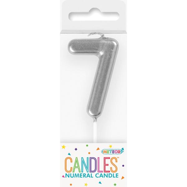 22 in stockMini Silver Numeral 7 Pick Candle - 8cm