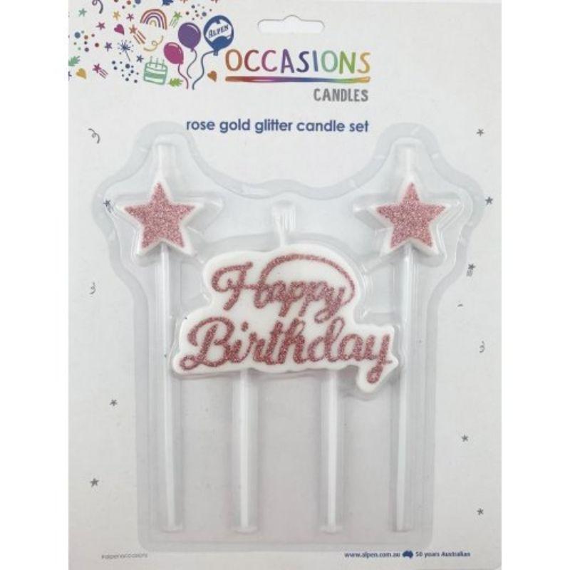 11 in stockGlitter Rose Gold Happy Birthday Candle Plaque + Stars