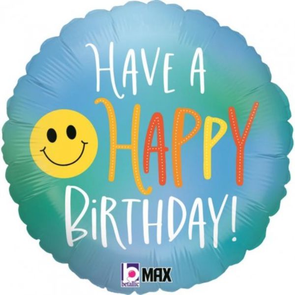 Only 1 left!Happy Birthday Smiley Round Foil Balloon - 45cm