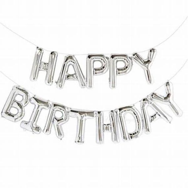 Only 1 left!Silver Happy Birthday Foil Balloon - Air Fill Only - 76cm x 48cm