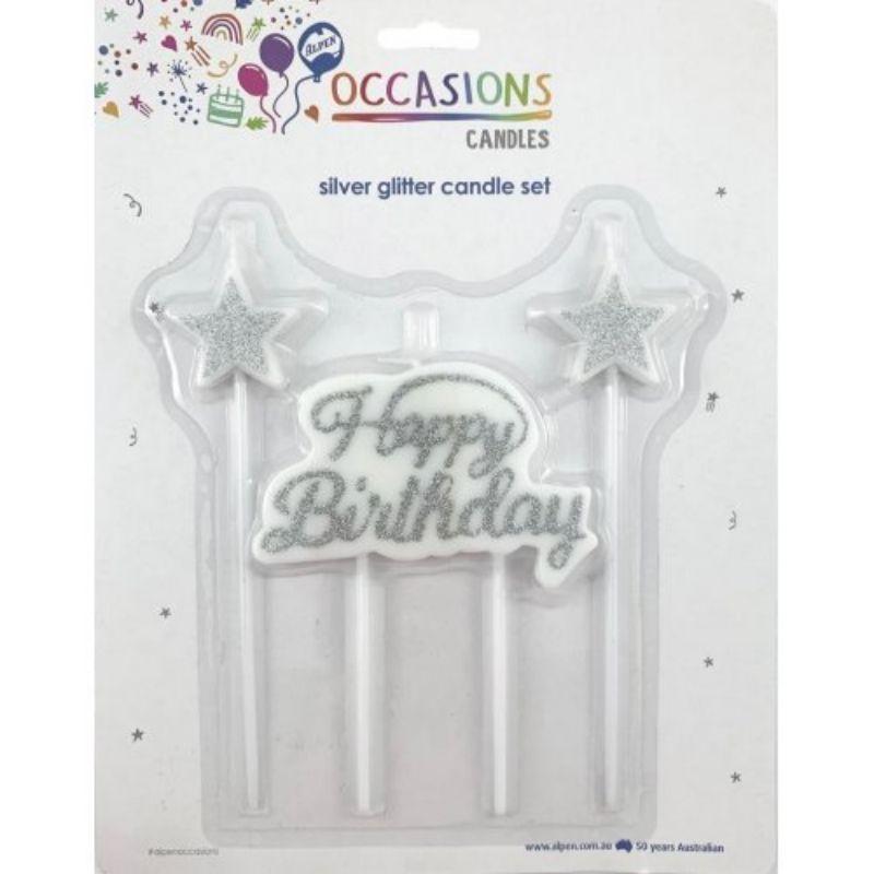 Only 4 left!Glitter Silver Happy Birthday Candle Plaque + Stars
