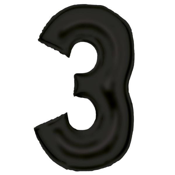 Black Number 3 Foil Balloon - 86cm