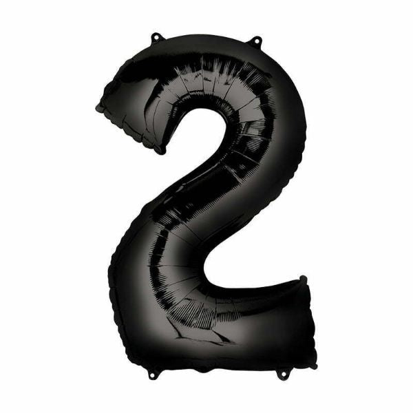 7 in stockLarge Silk Lustre Black Number 2 Foil Balloon - 55cm x 86cm