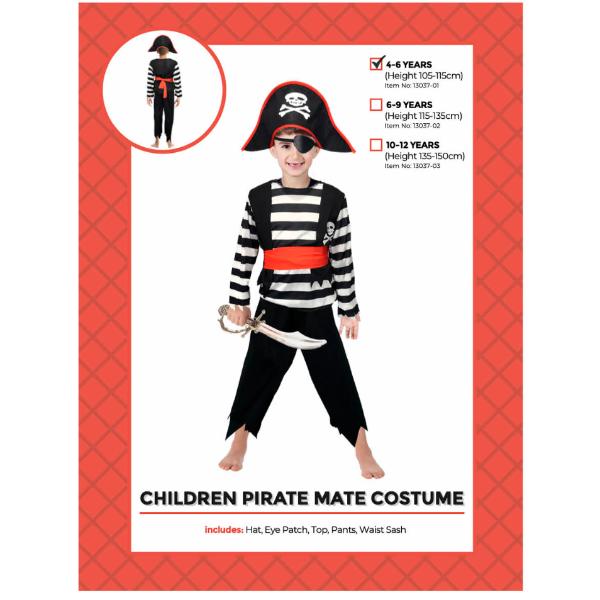 Only 3 left!Children Pirate Mate Costume - 4 - 6 Years
