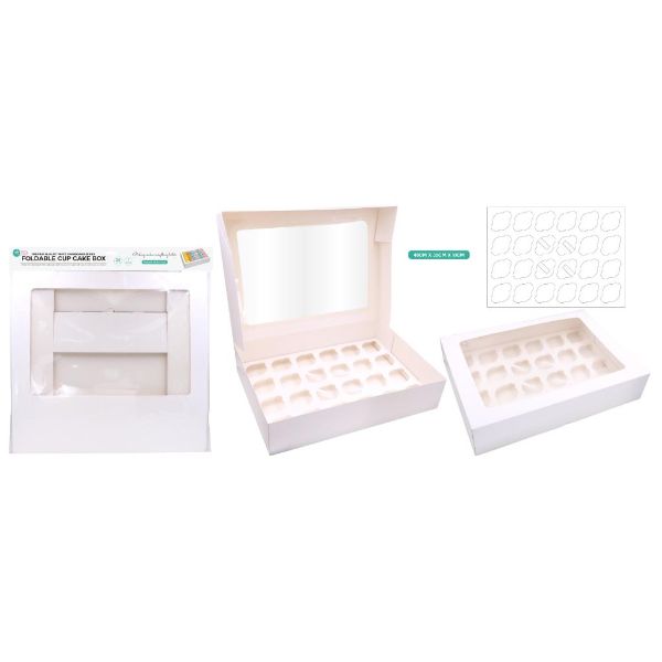 White 24 Cup Cake Section Box With Clear Window Lid - 44cm x 38cm x 10cm