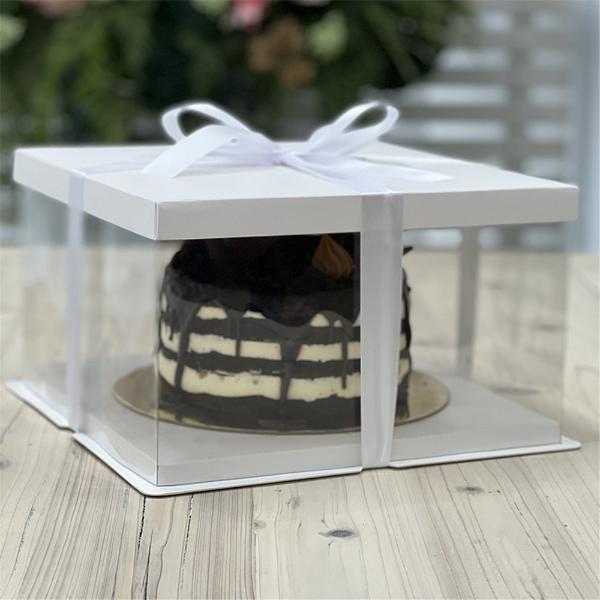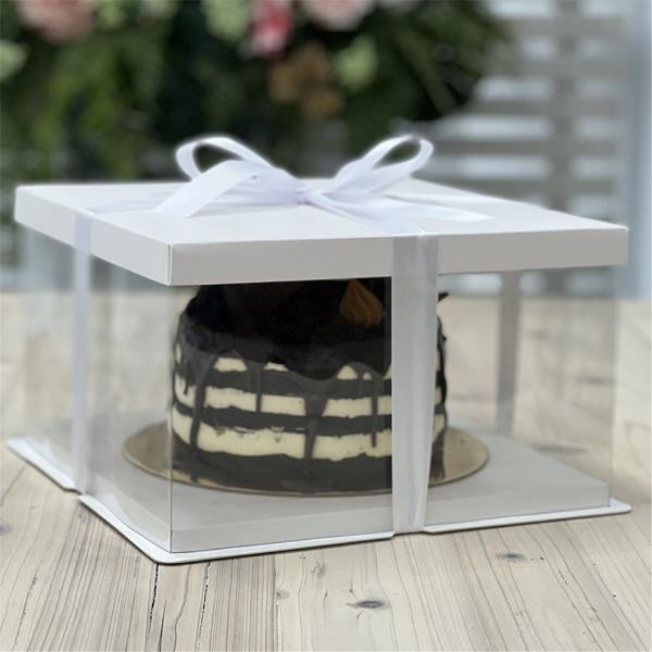 Only 2 left!Acetate 3m White Ribbon Cake Box - 12cm x 12cm x 6cm