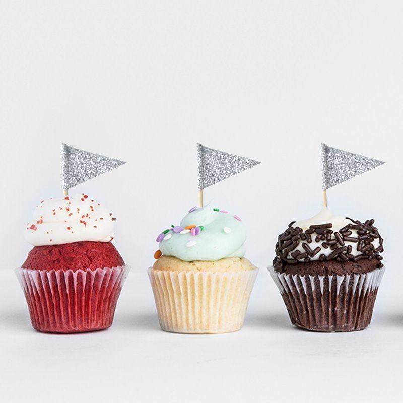 8 in stock12 Pack Silver Glitter Flag Toppers - 8cm