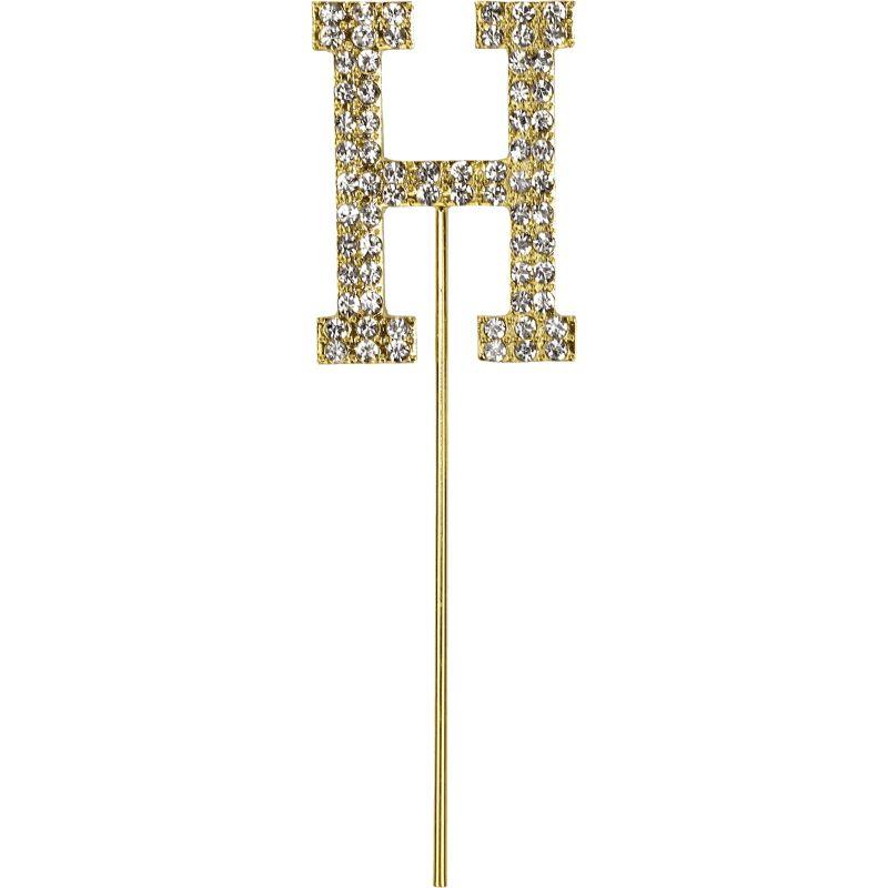 17 in stockGold Diamante Letter H Cake Topper - 10.5cm