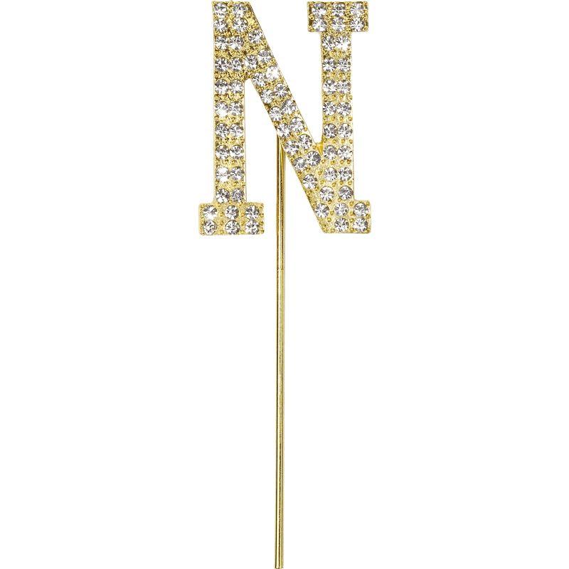 17 in stockGold Diamante Letter N Cake Topper - 10.5cm