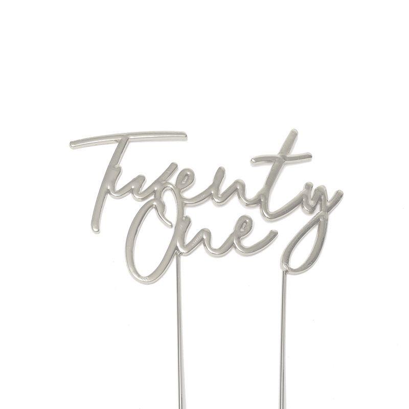 Only 2 left!Silver Plated TWENTY ONE Cake Topper - 17.5cm x 10cm