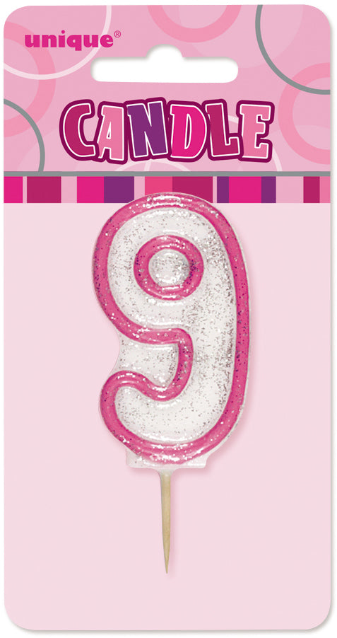 Only 2 left!Glitz Pink Numeral 9 Candle