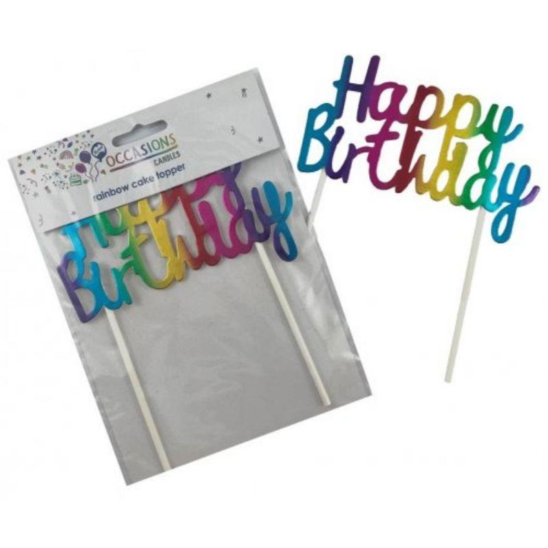 25 in stockRainbow Acrylic Happy Birthday Cake Topper - 0.2cm