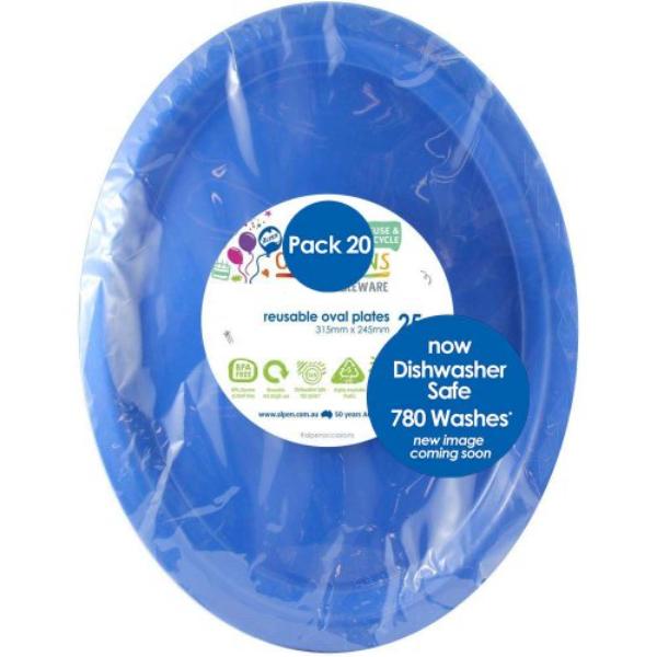 20 Pack Royal Blue Reusable Oval Plates - 31.5cm x 24.5cm
