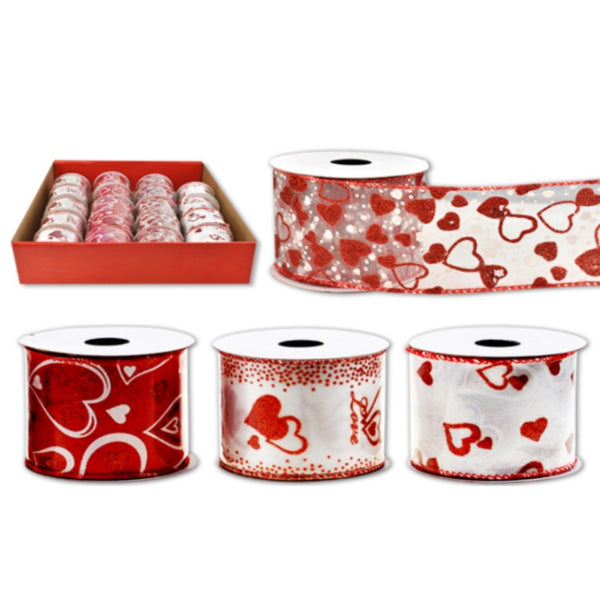 22 in stockValentine Printed Wire Ribbon - 274cm x 6.35cm Wide