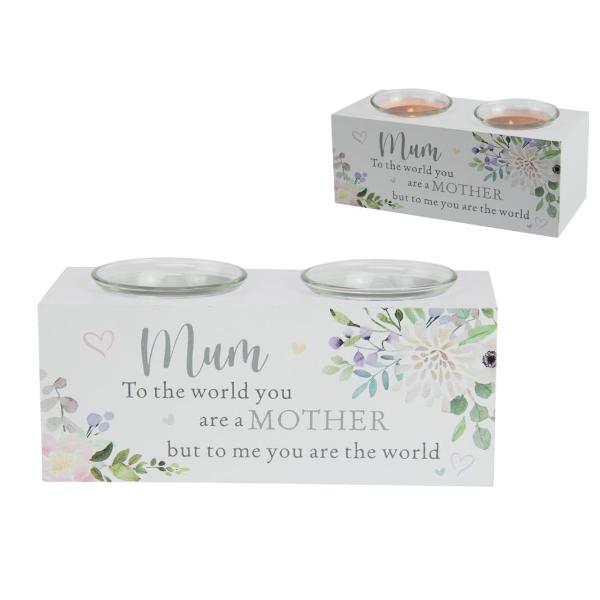 Only 2 left!Floral Mum Twin Tealight Holder - 17cm