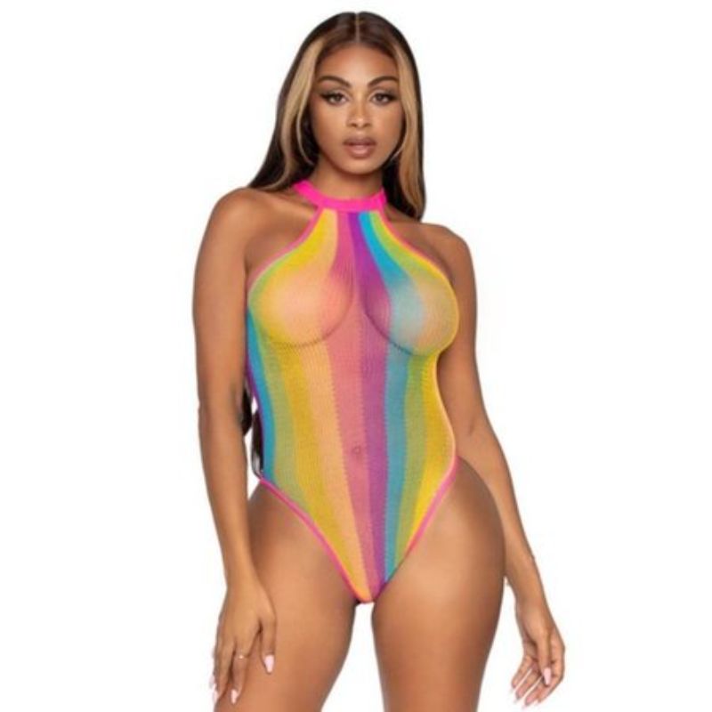 Only 4 left!Rainbow Shredded Opaque Cut Out Teddy bodysuit Festival Pride Lingerie - OS