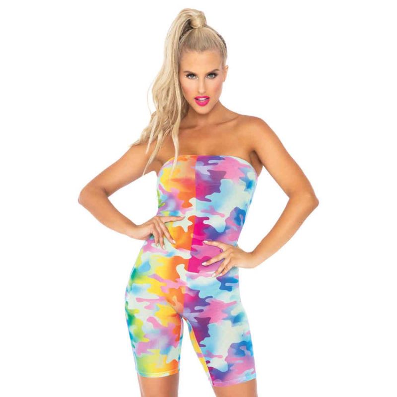 Only 4 left!Rainbow Camo Mesh Strapless Romper - MED / LGE